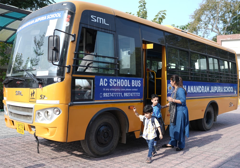 A student using the school bus is expected to be at the bus stop at least ten minutes before the scheduled arrival of the bus. The student has to be on the correct side of the arriving bus. The scheduled pick-up time is available with the transport-in-charge at the school. The school reserves the right to alter the timings, routes and stops as and when necessary.